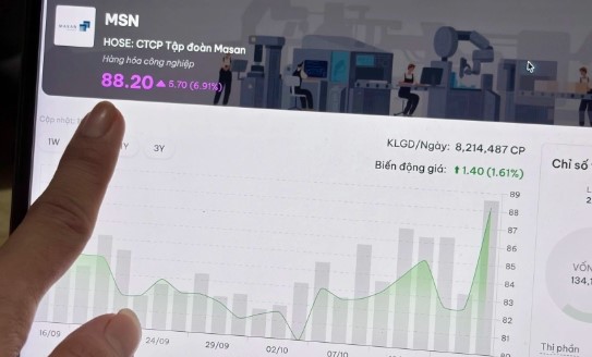 Cổ phiếu Masan (MSN) tăng kịch trần 6,9%, đóng cửa ở mức 71.700 đồng, với thanh khoản đạt hơn 6 triệu đơn vị. Đây là phiên tăng mạnh nhất của MSN trong nhiều tháng trở lại đây. Theo giới phân tích, nguyên nhân đến từ việc kỳ vọng kết quả kinh doanh quý III của Tập đoàn Masan sẽ khả quan, nhờ sự phục hồi của mảng tiêu dùng và bán lẻ.